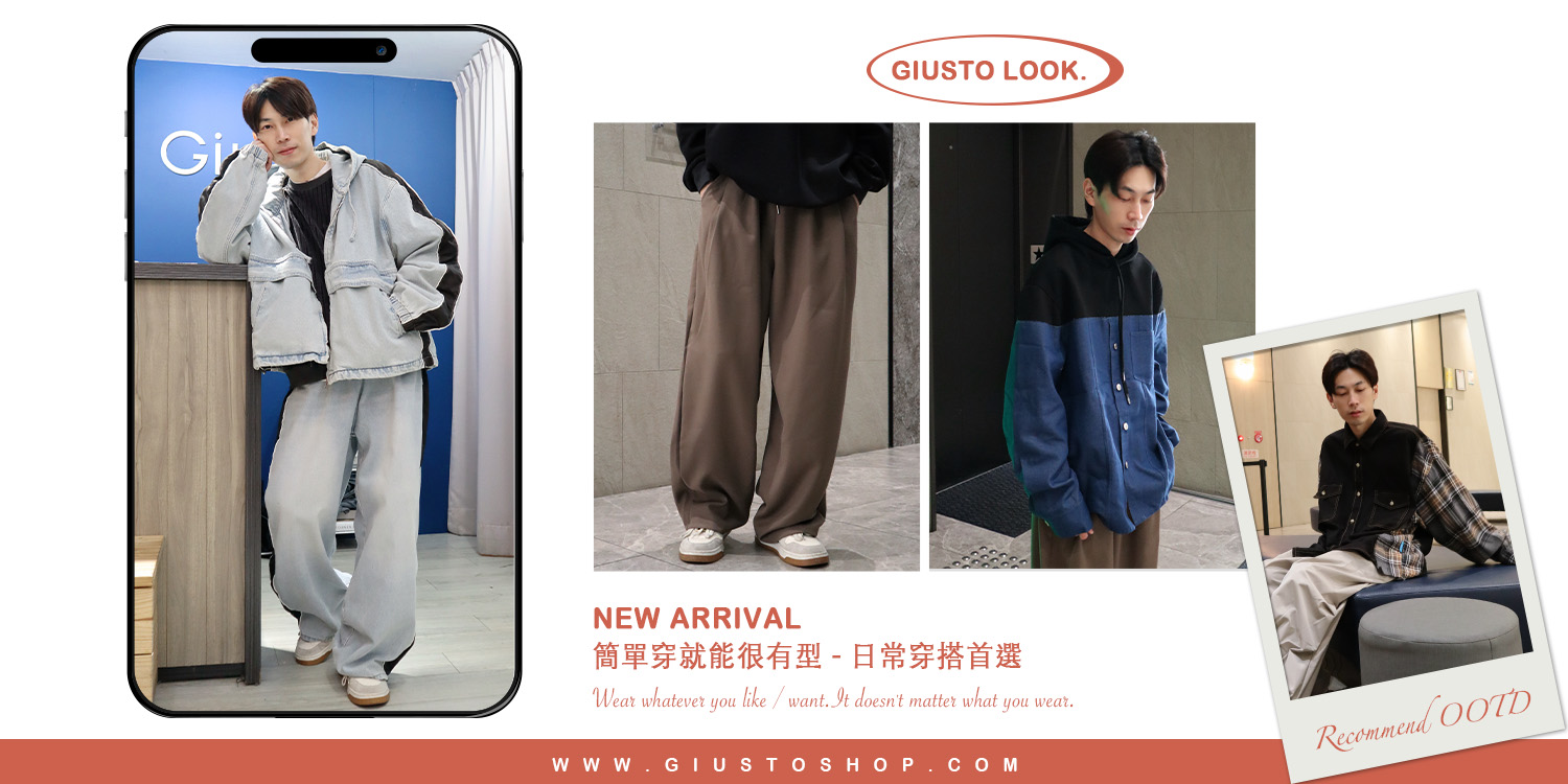 【 Giusto 】側邊條拼接寬版牛仔褲