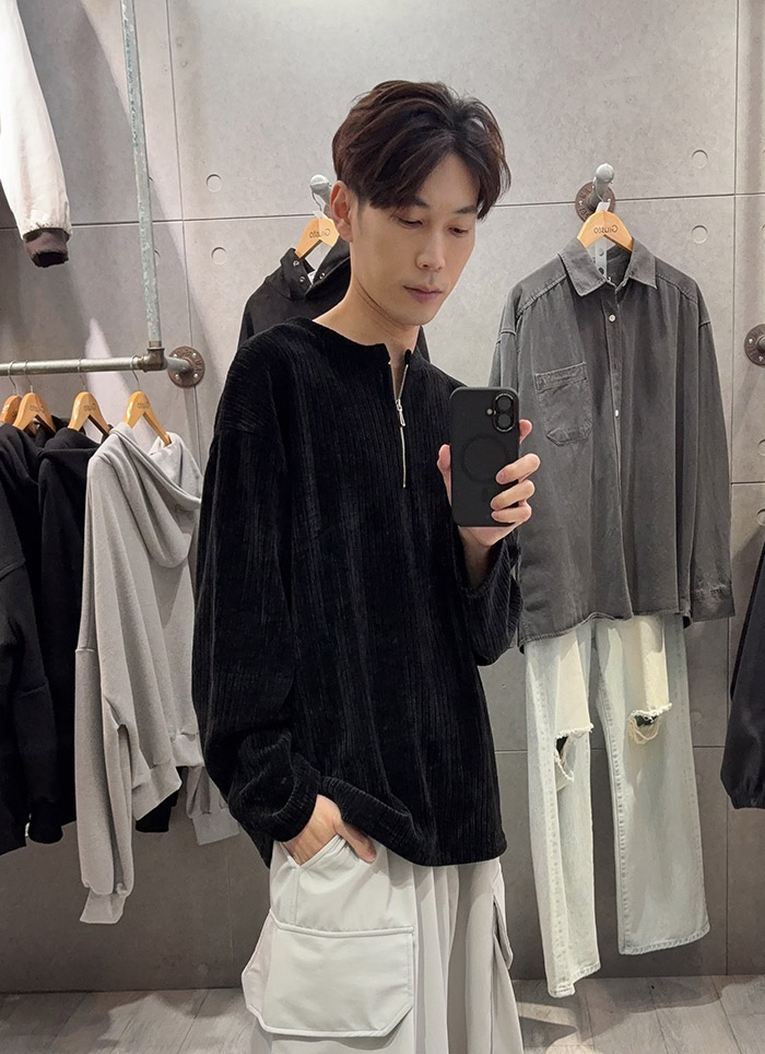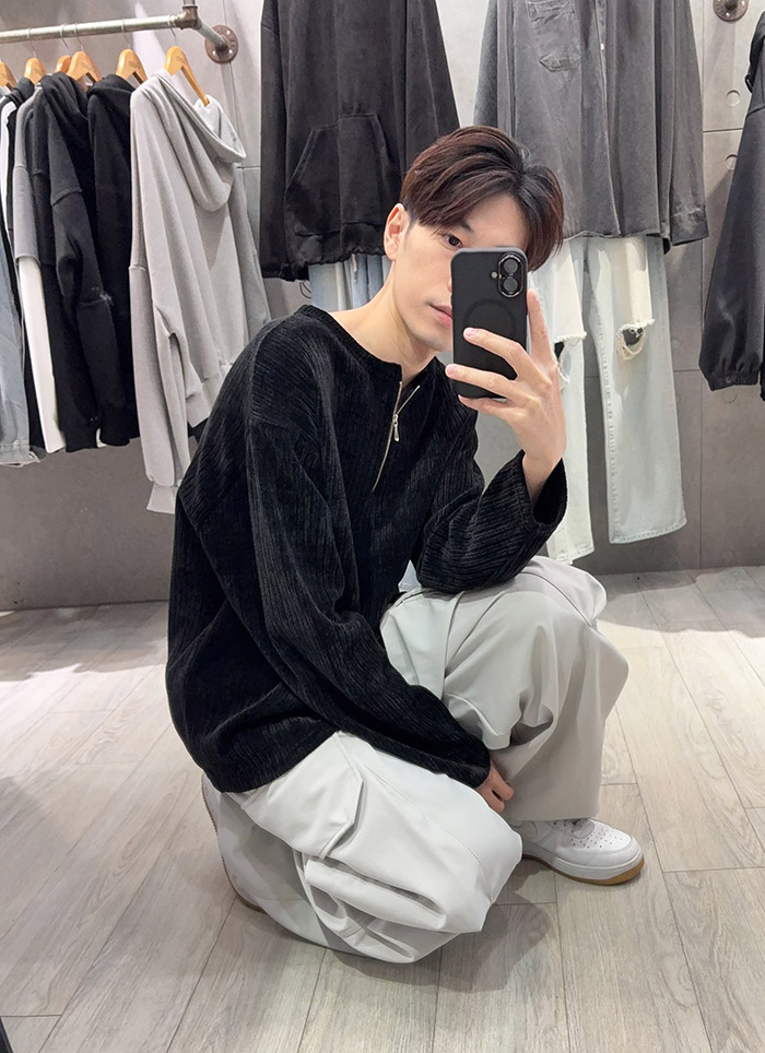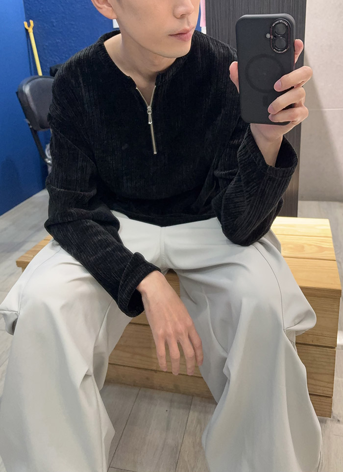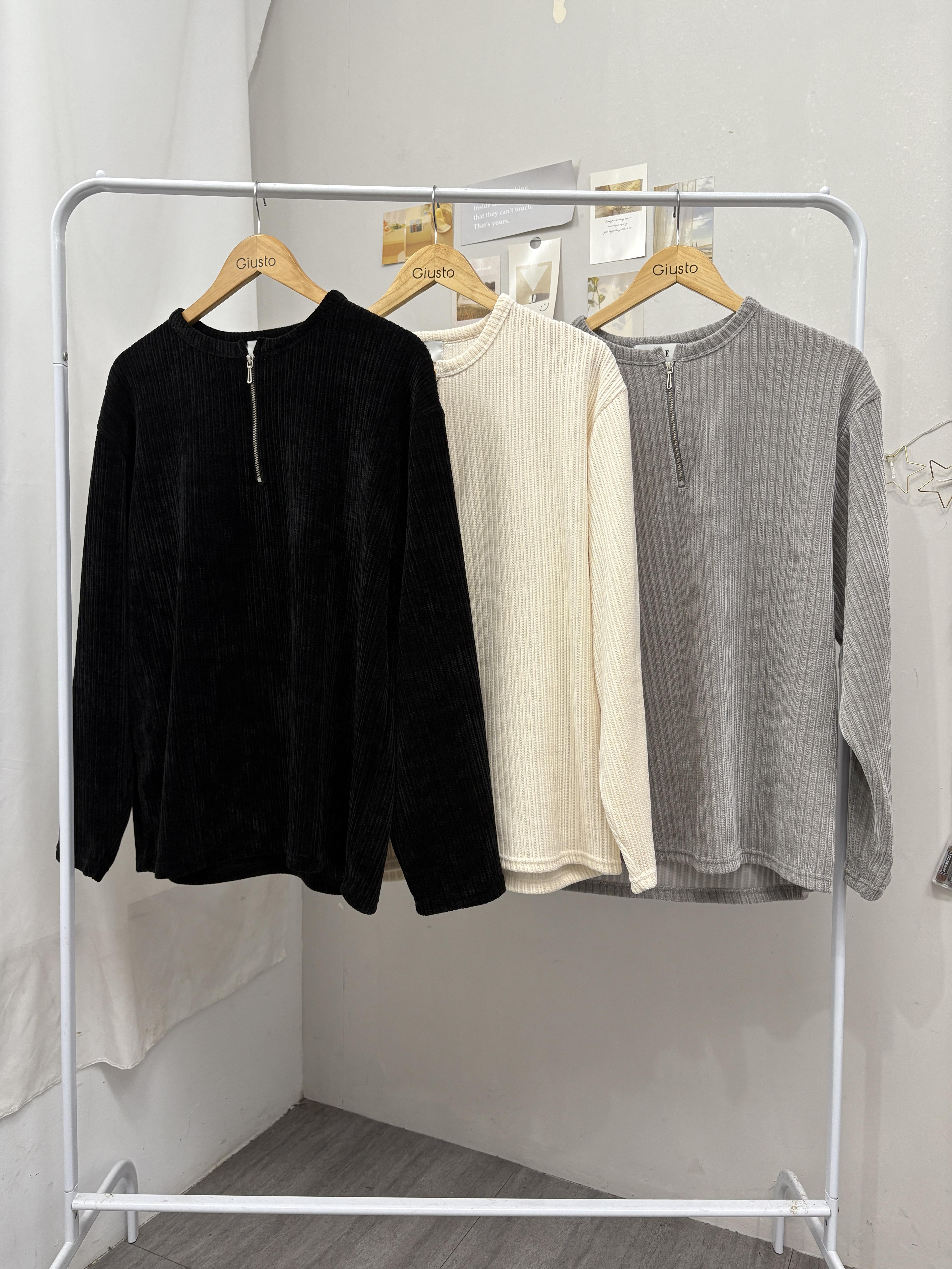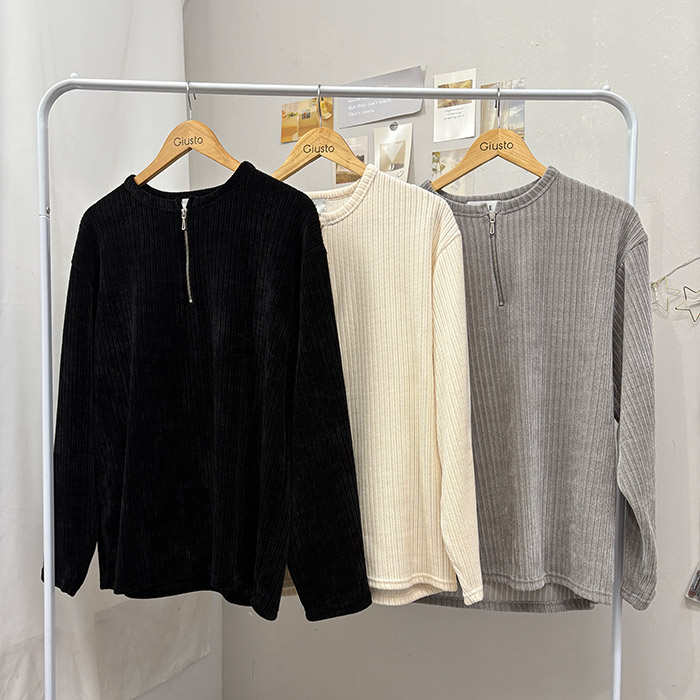 【 Giusto 】前拉鍊絨面值坑條長袖上衣