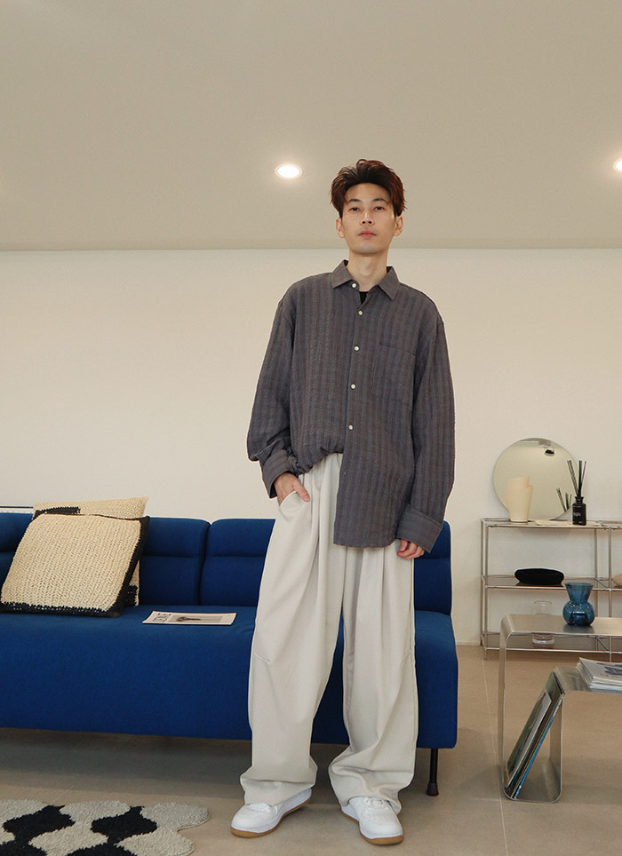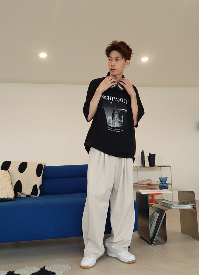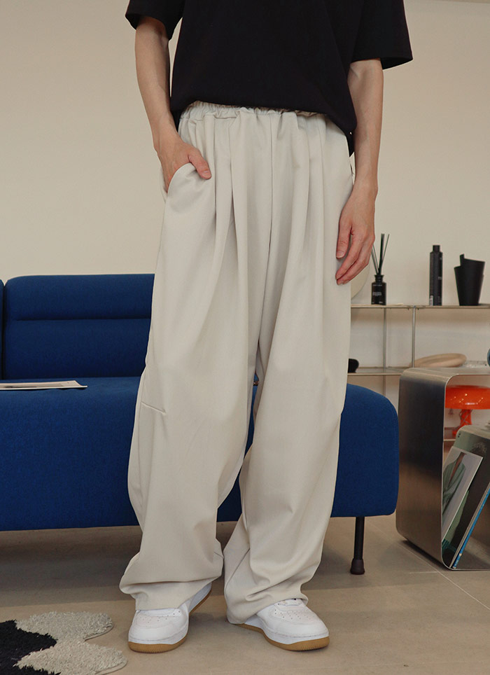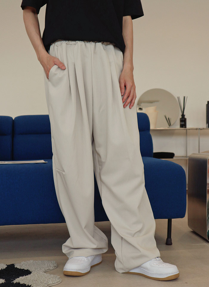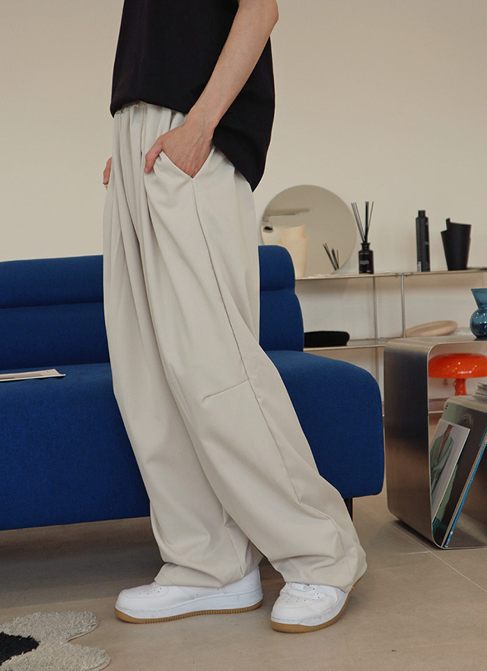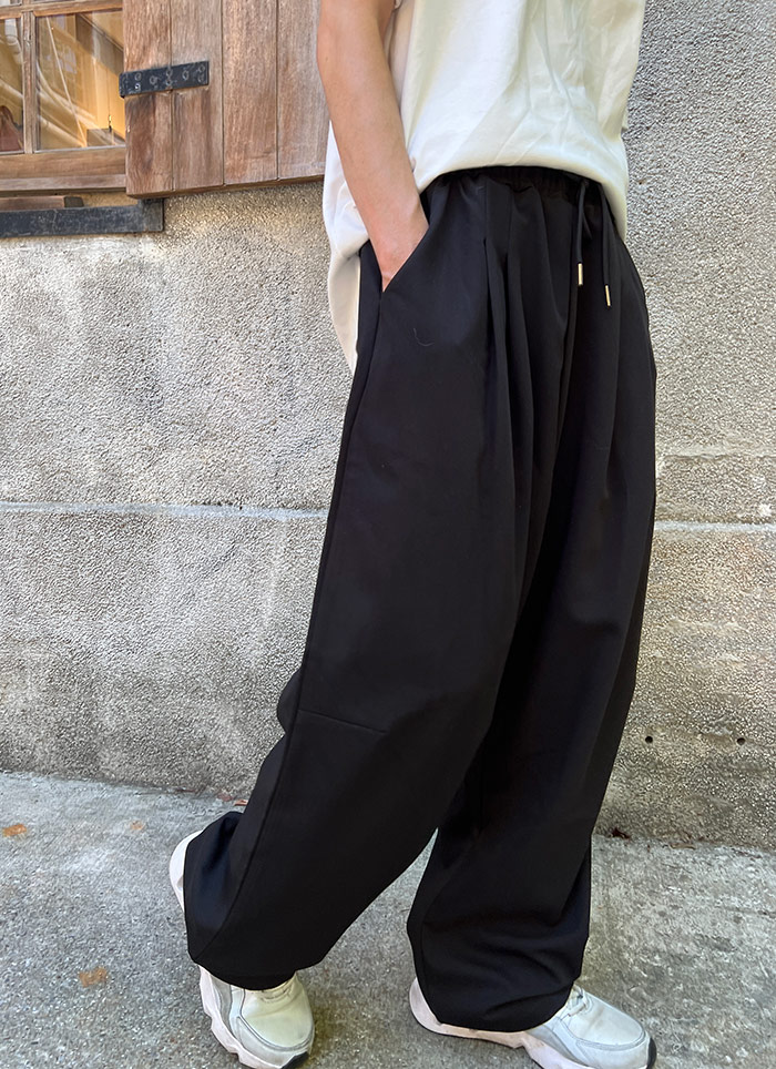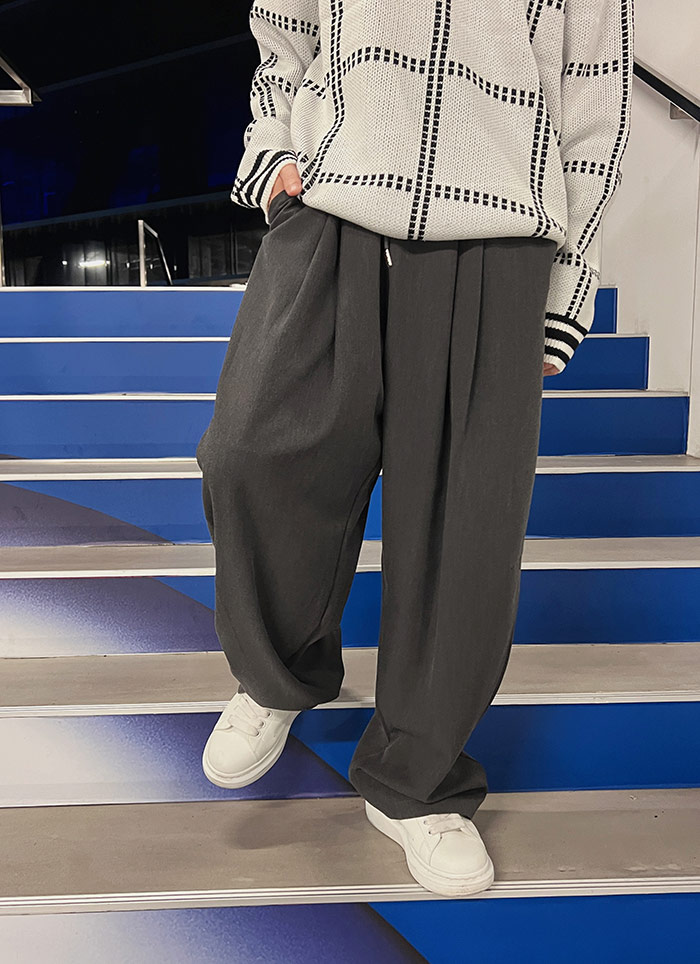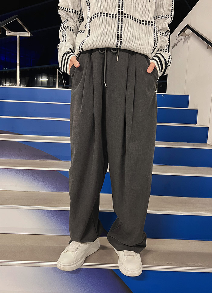 【 Giusto 】膝蓋車線鬆緊褲頭寬褲