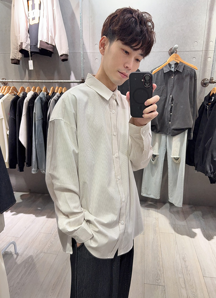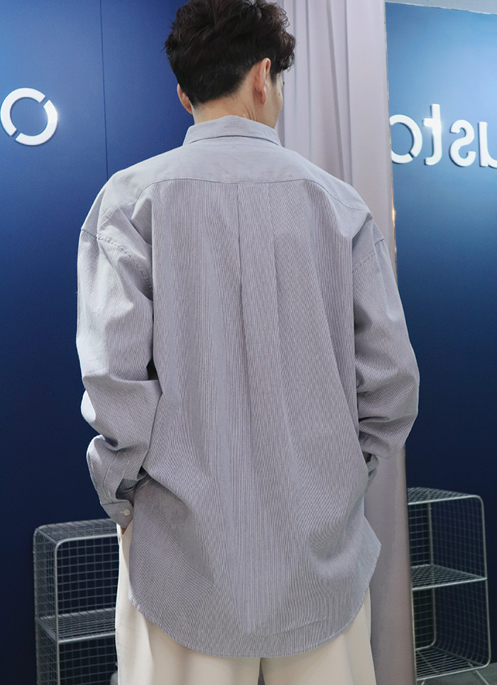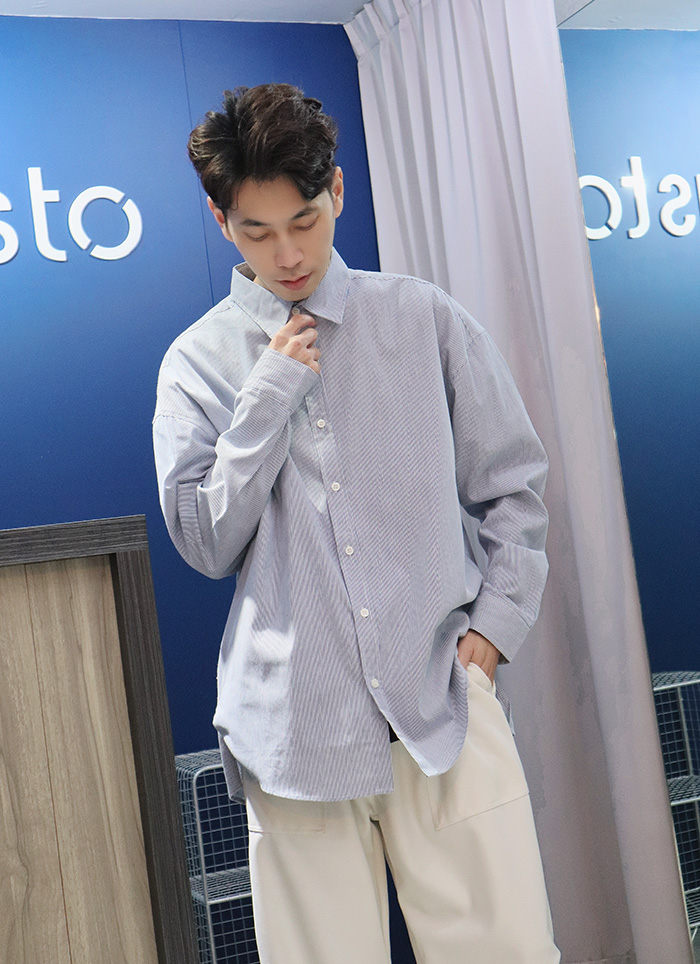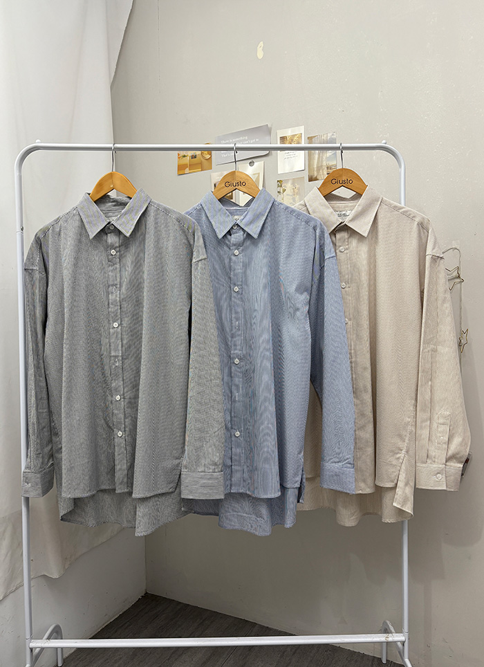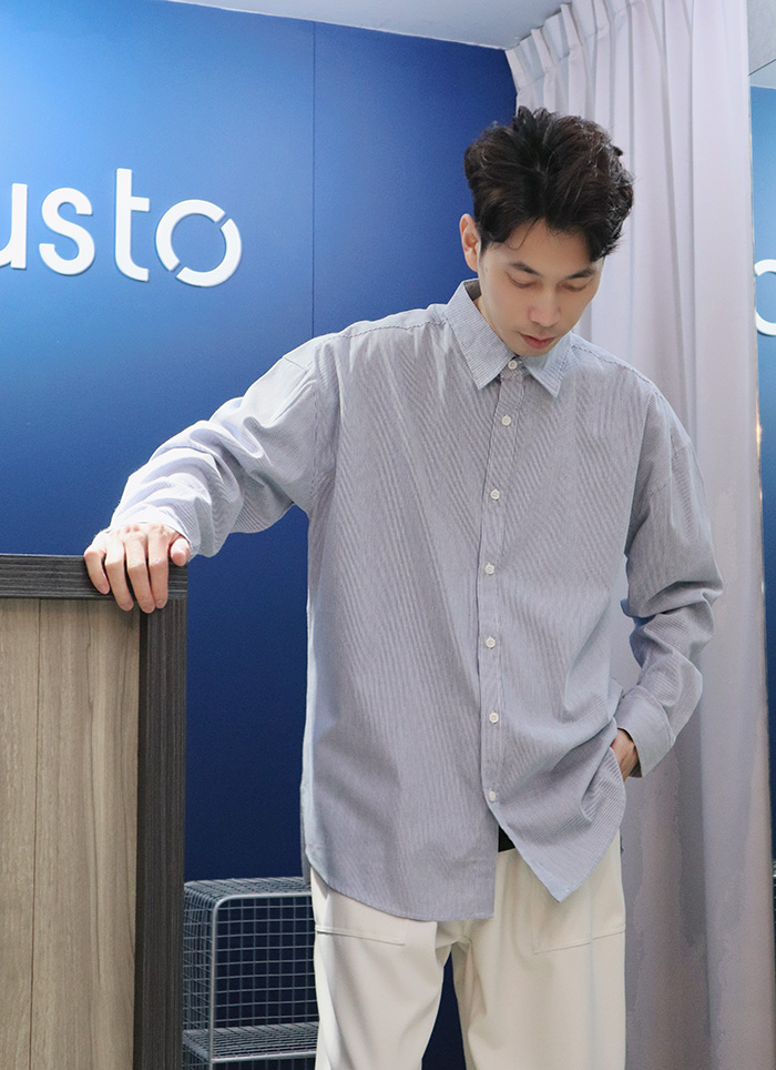 【 Giusto 】百搭基礎條紋薄款長袖襯衫
