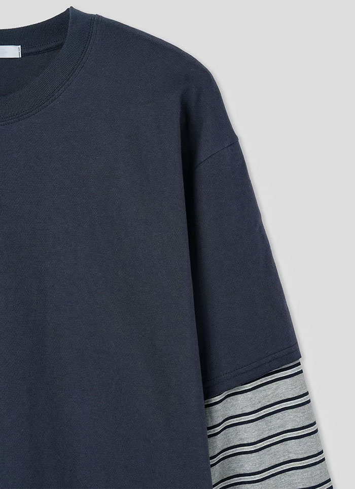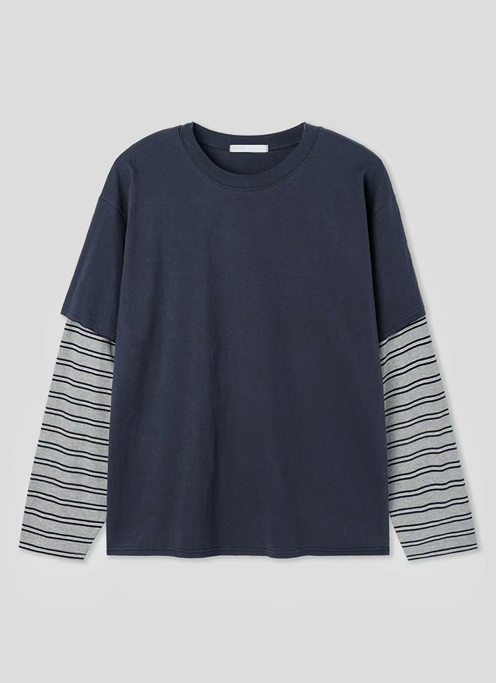 【 Giusto 】拼接條紋袖情侶款上衣