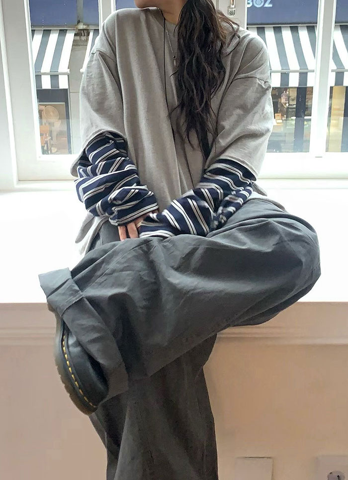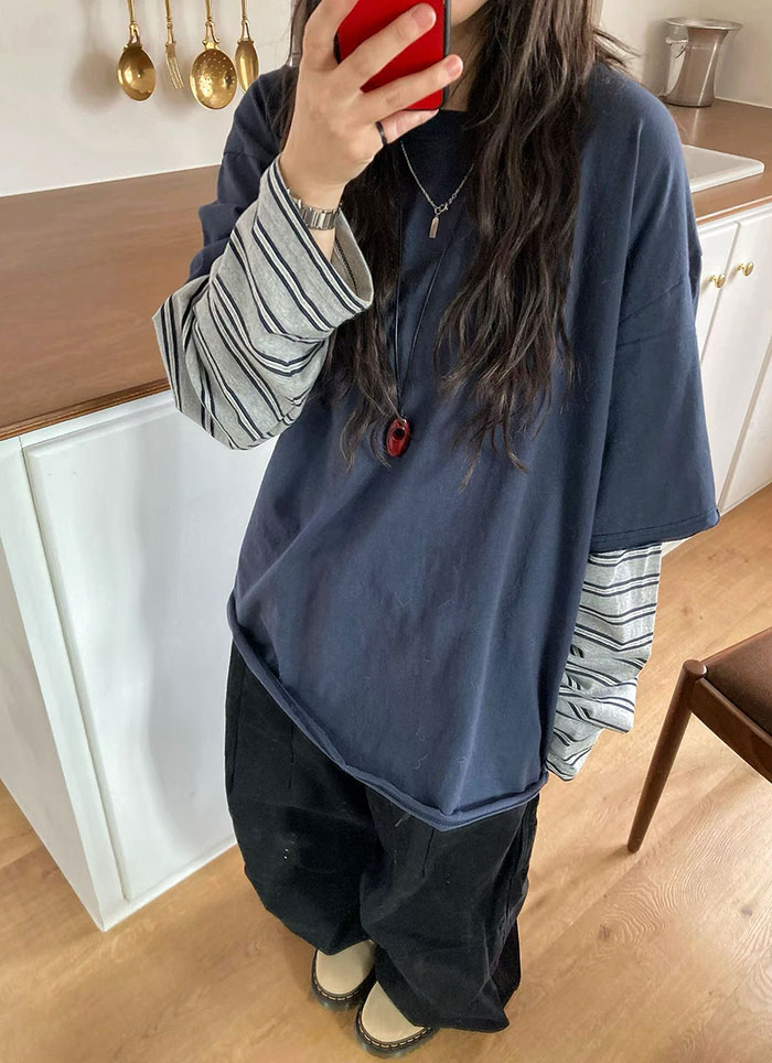 【 Giusto 】拼接條紋袖情侶款上衣