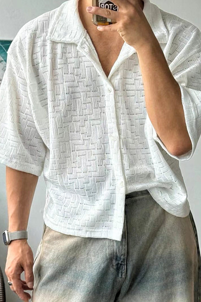 【 Giusto 】幾何紋路短袖針織襯衫