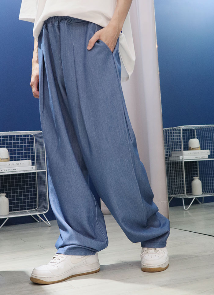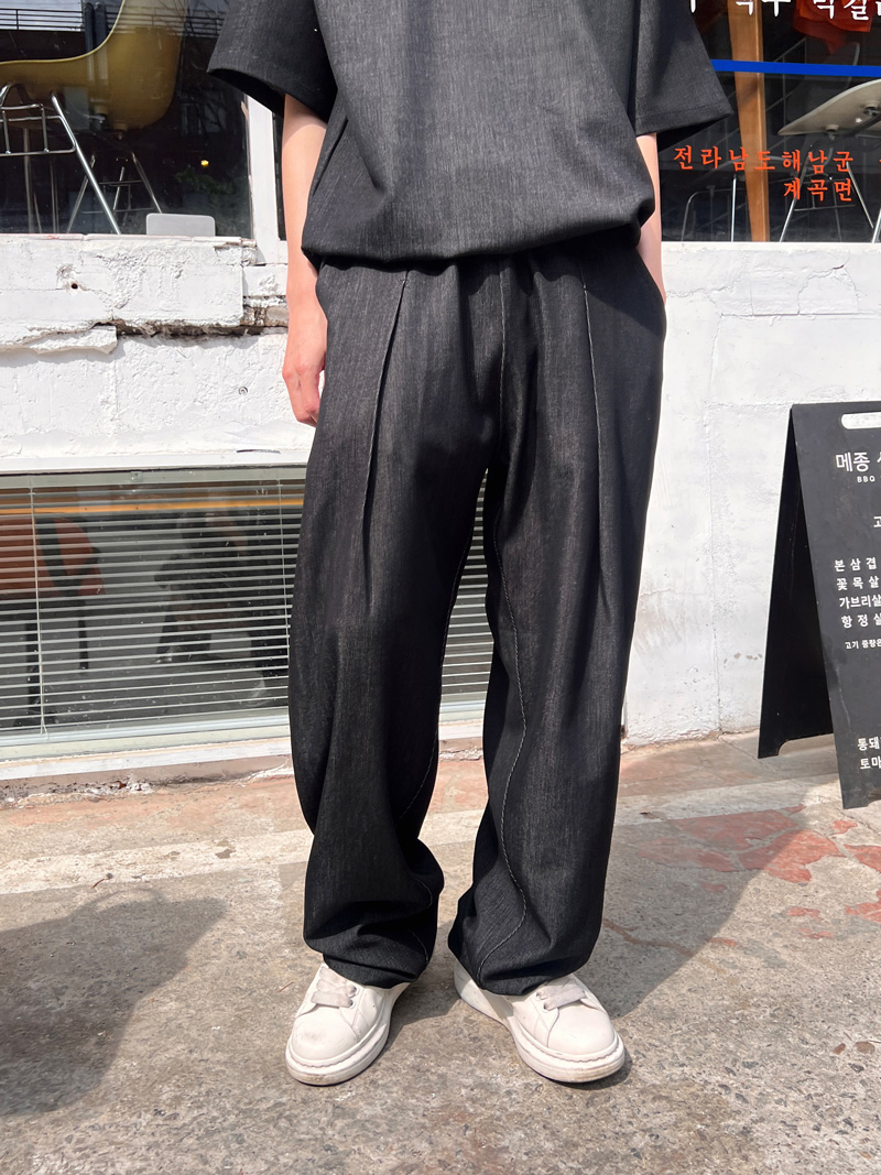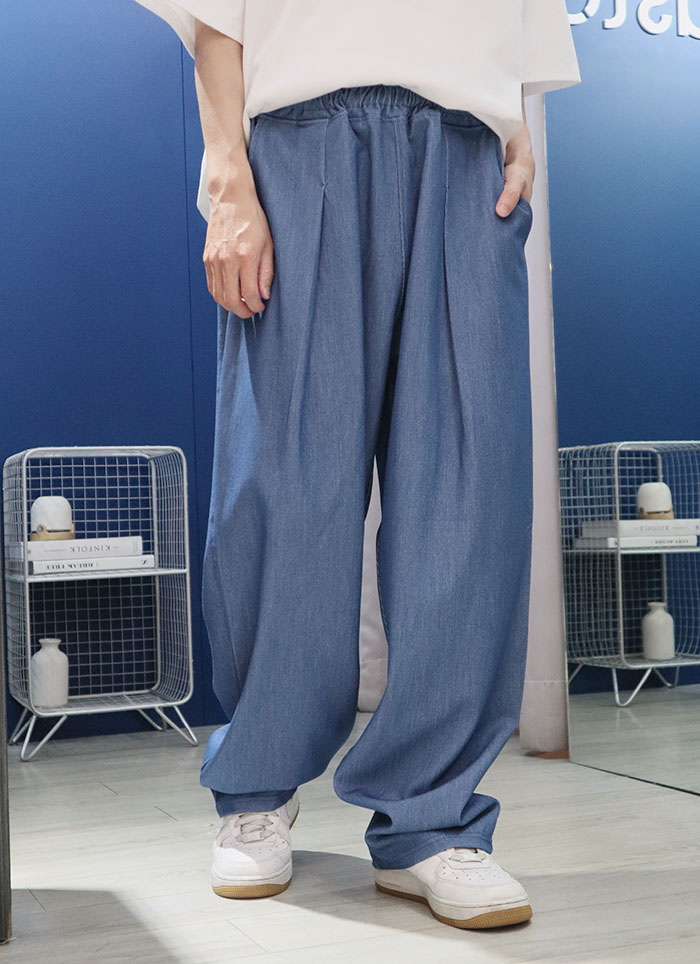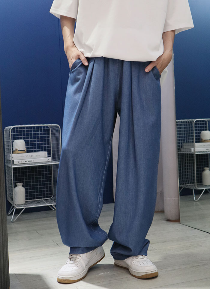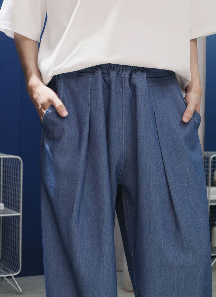 【 Giusto 】光澤抓褶牛仔寬版長褲