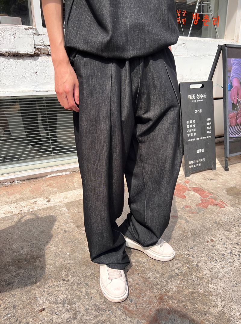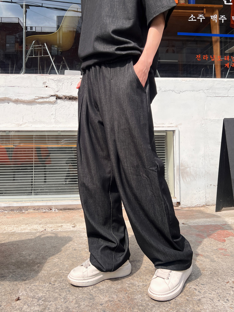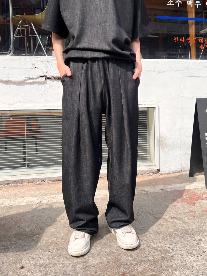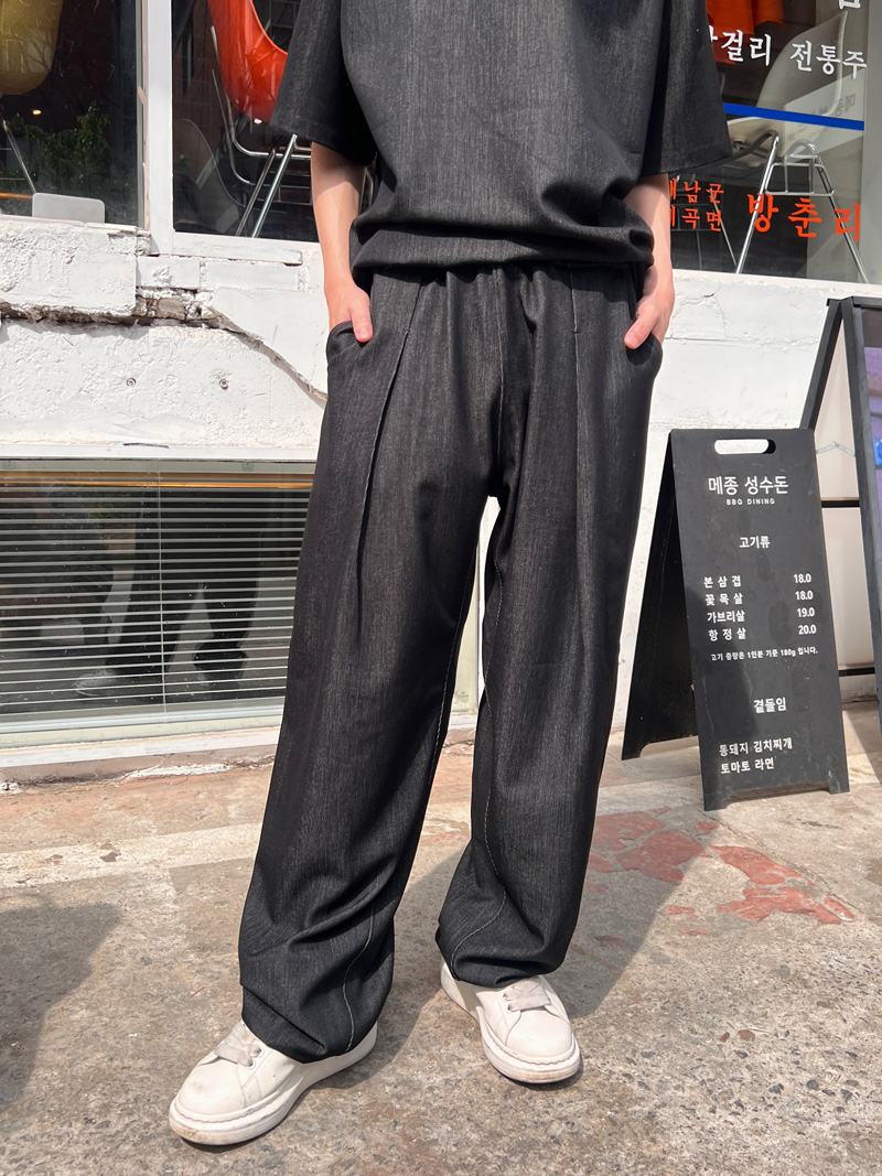 【 Giusto 】光澤抓褶牛仔寬版長褲