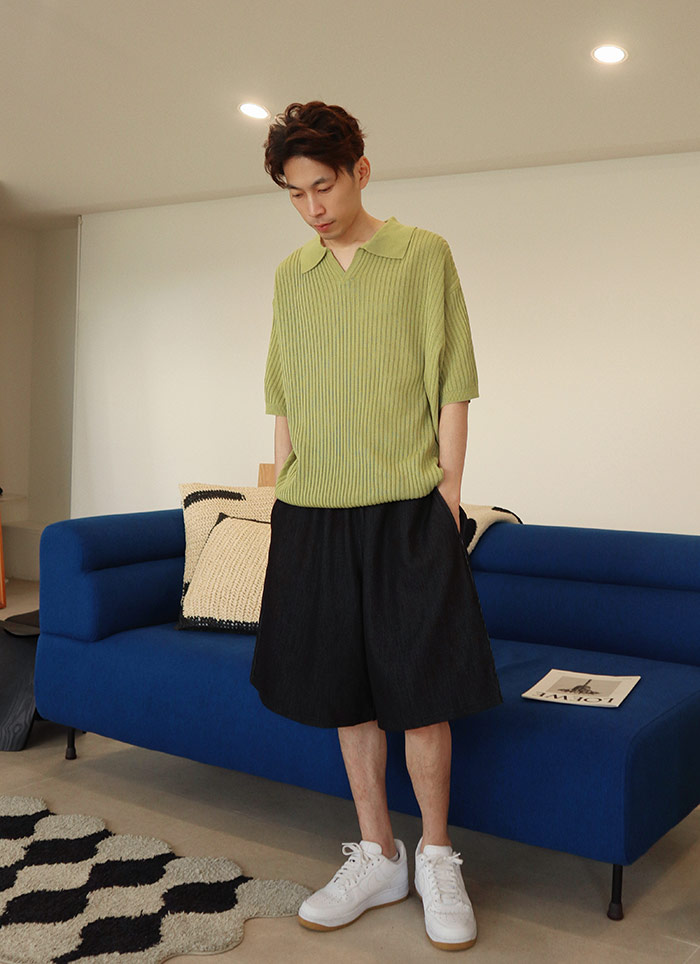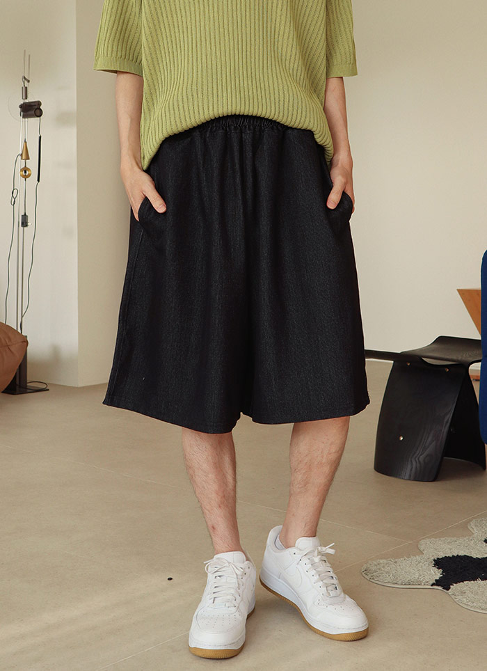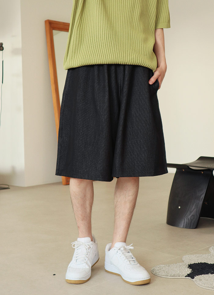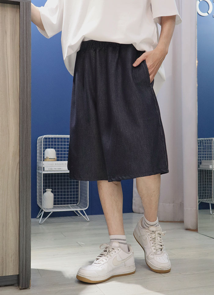 【 Giusto 】光澤抓褶牛仔寬短褲