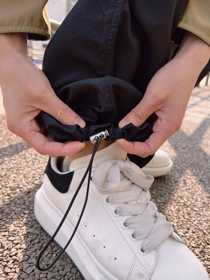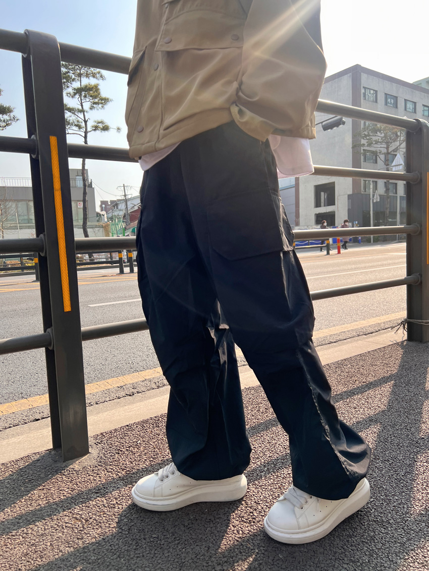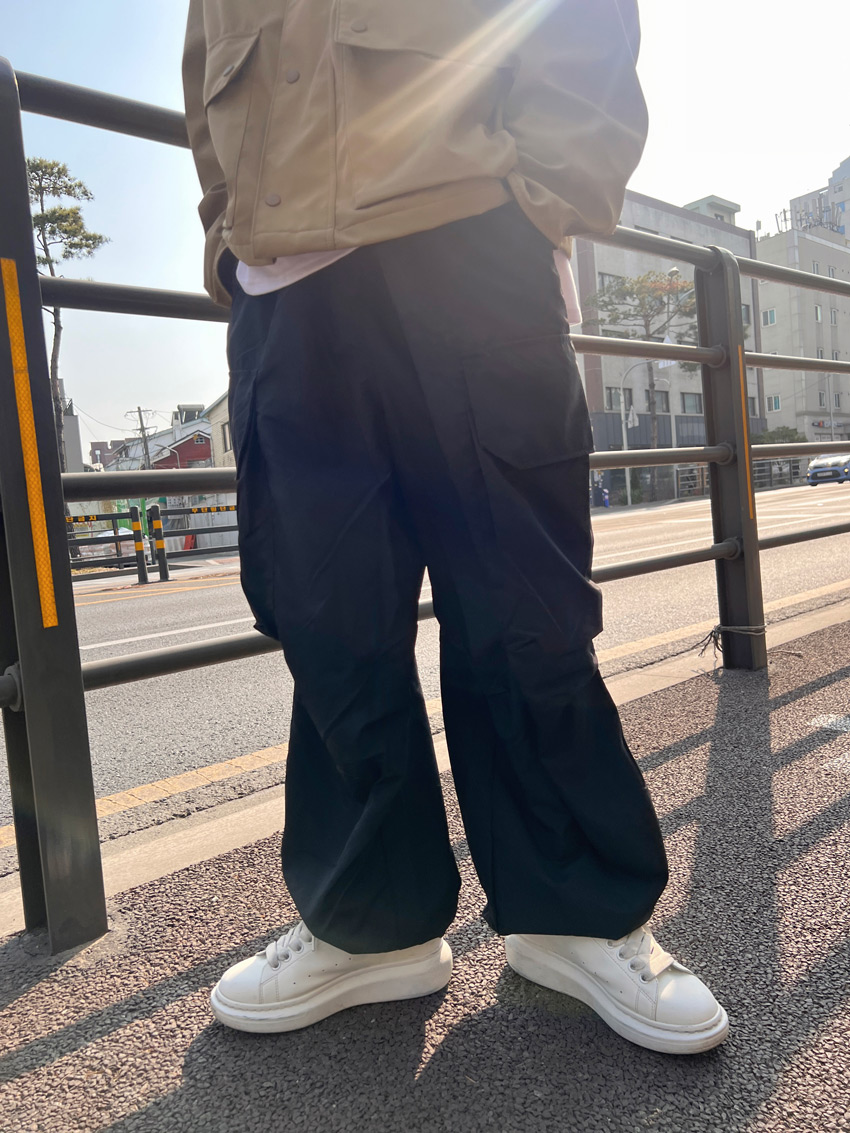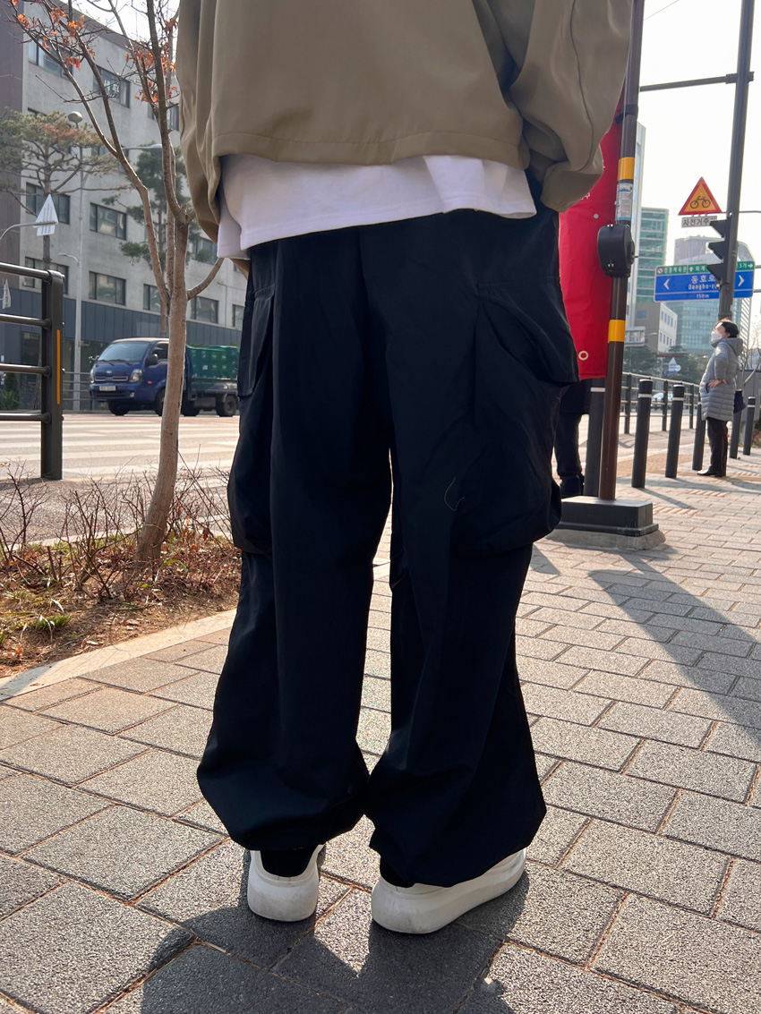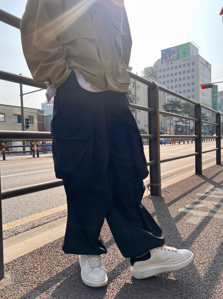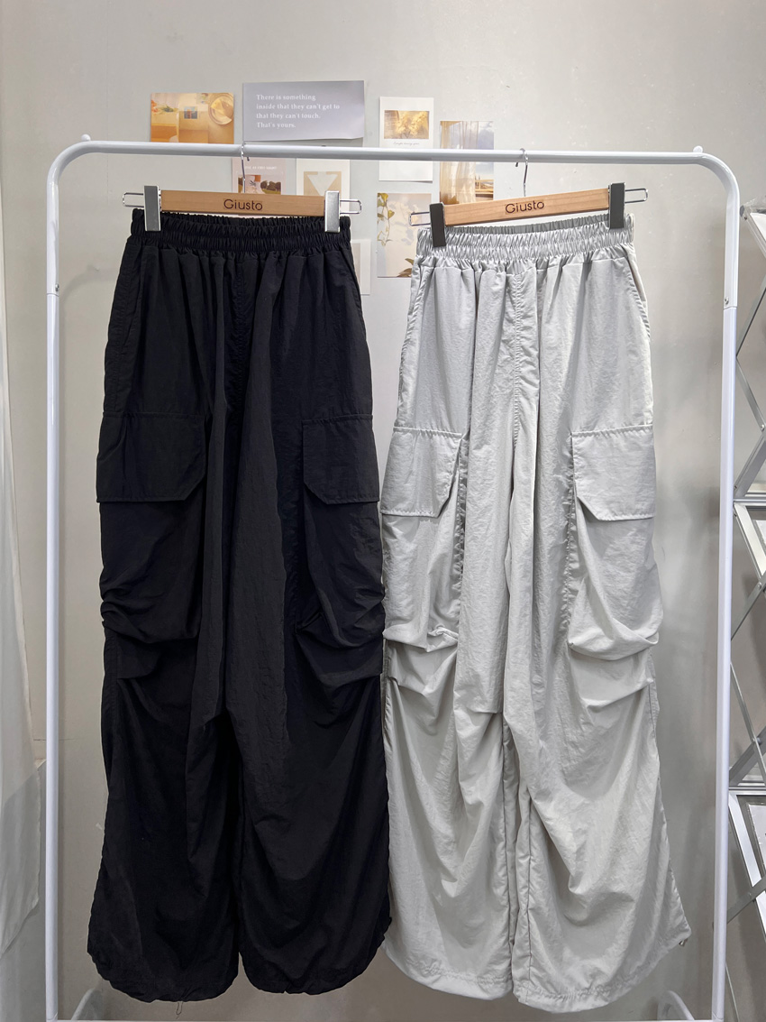【 Giusto 】皺摺尼龍布大口袋個性寬褲 - 極薄