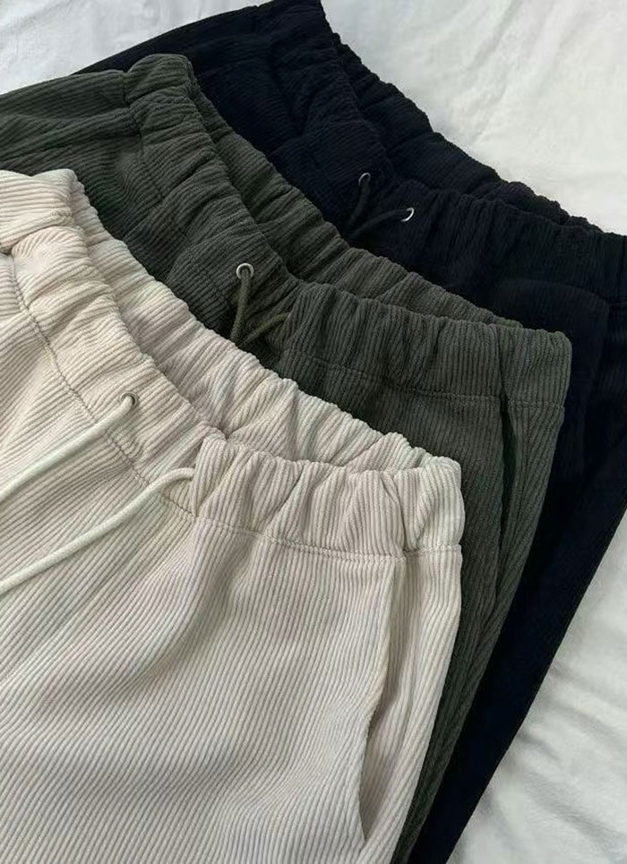 【 Giusto 】內磨毛坑條鬆緊褲頭百搭寬褲