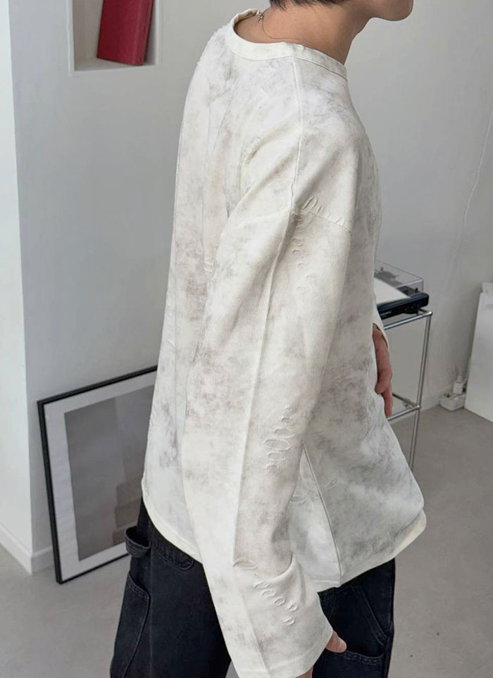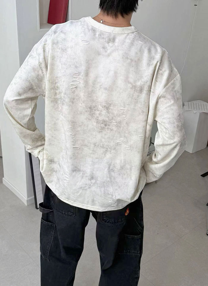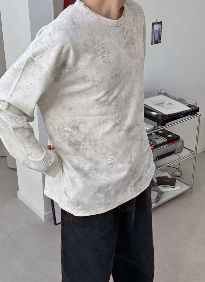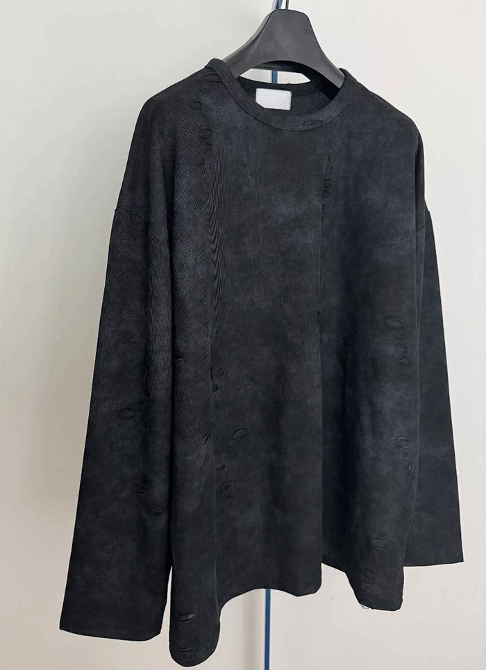 【 Giusto 】渲染破壞布料長袖寬鬆上衣